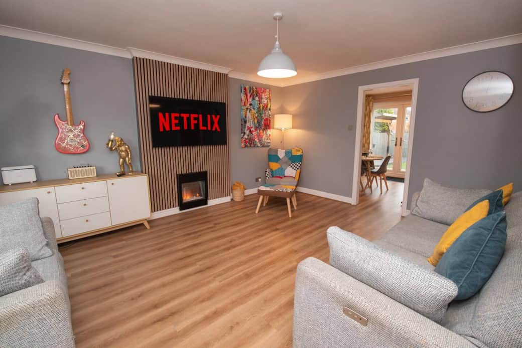 Our property sleeps 6 guests and offers relaxation, entertainment, and fitness. You’ll find plenty to keep all ages busy. Enjoy the games room, complete with arcade machines for hours of fun, a PlayStation and Netflix, and a home gym to stay active. Convenience is right on your doorstep. We are close to town and just a four-minute walk from local shops, several takeaways, and a welcoming micropub.